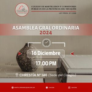 Nos complace en comunicar a todo el cuerpo colegial a las nuevas autoridades del Colegio de Martilleros y Corredores Públicos de la Provincia del Neuquén.