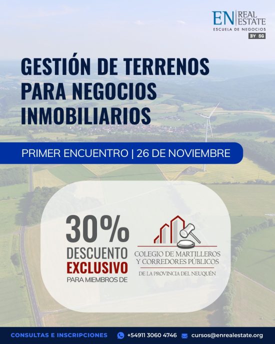 Gestión de terrenos para negocios Inmobiliarios Nos alegra compartir el nuevo convenio entre éste Colegio y la EN Real Estate – Escuela de Negocios, que beneficia a todos los matriculados en importantes descuentos para los…