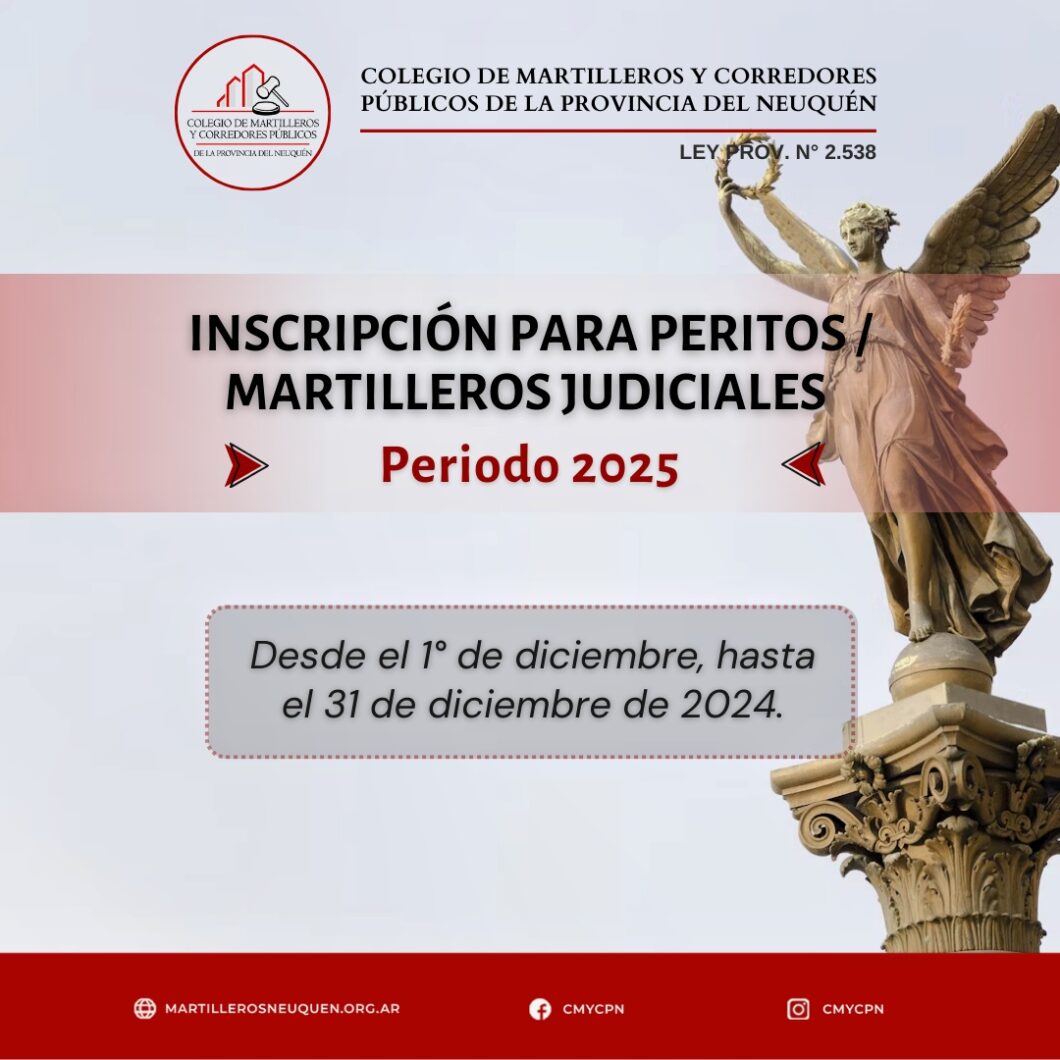 El certificado de matrícula para la inscripción deben solicitarlo por mail (sin costo): info@martillerosneuquen.org.ar y hasta el 23 de diciembre inclusive.