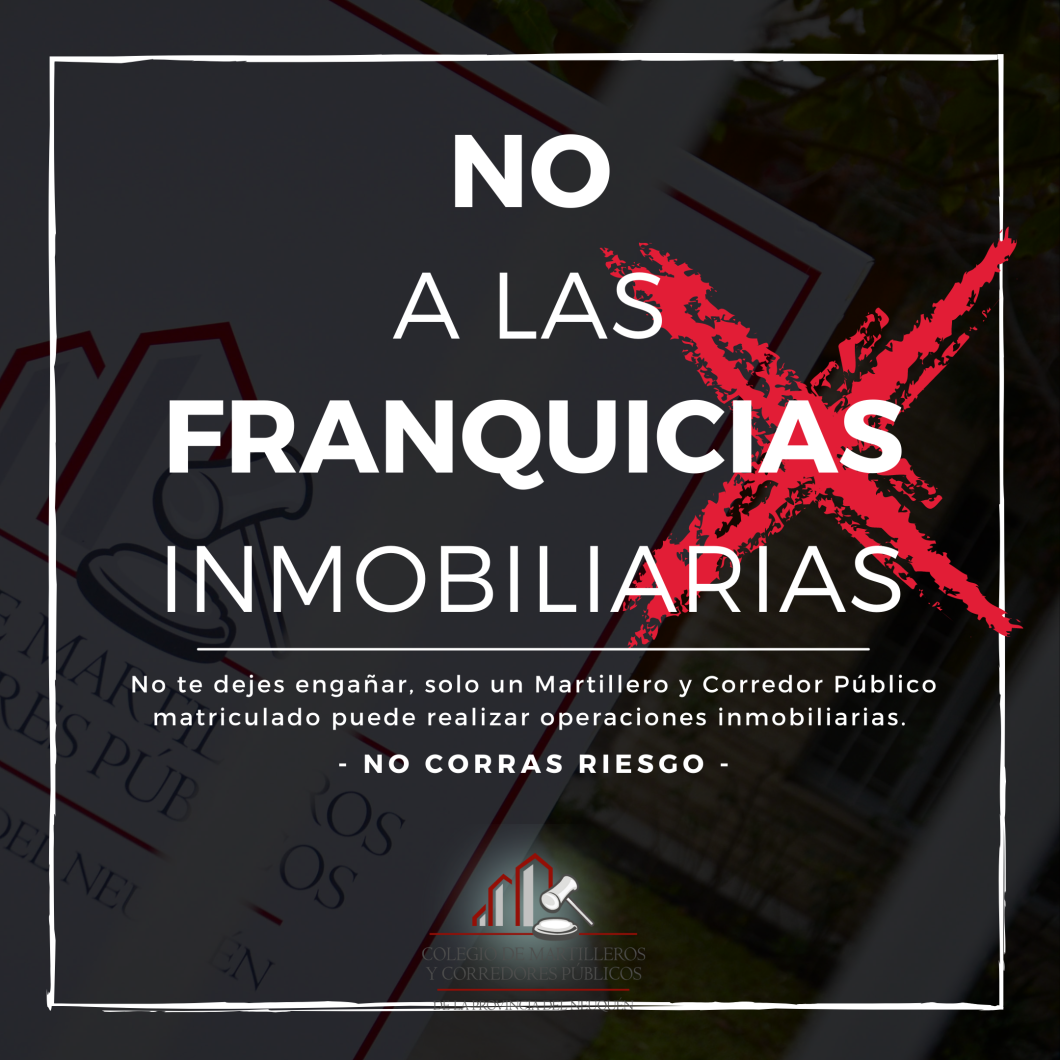 Las franquicias inmobiliarias están fomentando que cientos de personas que no tienen Matrícula habilitante y están fuera de la regulación profesional realicen esta actividad; por lo tanto, están fuera de la ley.