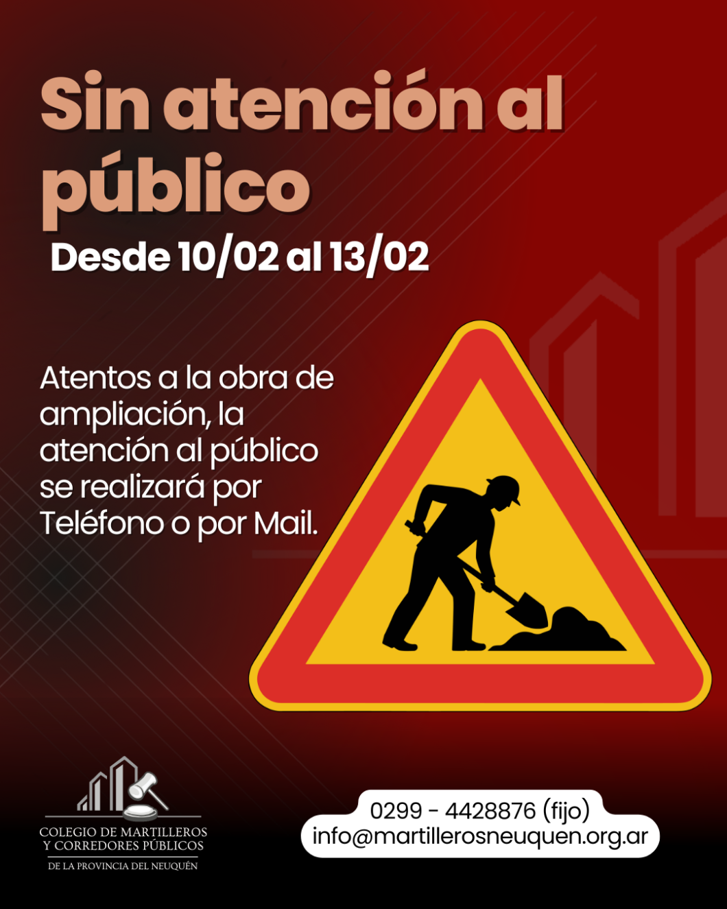 Atentos a la obra de ampliación, desde el 10/02 al 13/02 estaremos sin atención presencial.